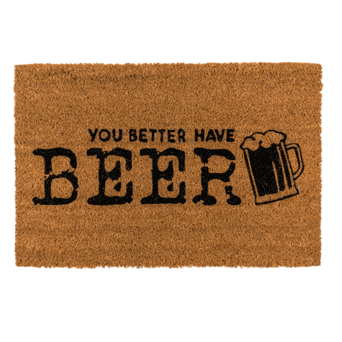 Met deze deurmat zet je gelijk de juiste motivatie voor bezoekers. De deurmat is bedrukt met de tekst "You Better Have Beer". De afmetingen van de deurmat zijn ca. 60 x 40cm. Het materiaal bestaat uit kokosvezel en PVC.