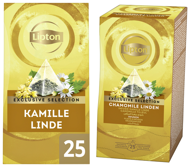 * Lipton Exclusive Selection is hét concept bij uitstek voor bedrijven en restaurants. * Het Lipton Exclusive Selection is een zorgvuldig uitgekozen range van 12 verschillende varianten om aan de verschillende voorkeuren van uw gasten te voldoen. * Het assortiment bevat lange theeblaadjes en kruiden, gecombineerd met zichtbare stukjes fruit en bloemen. * De thee zit verpakt in een semi-transparant, piramidevormig theebuiltje. * De piramidevorm verzekert meer plaats voor de ingrediënten om te bewegen tijdens de infusie met een uitstekend aroma, smaak en kleur als gevolg. * 25 piramidezakjes van 2gram.